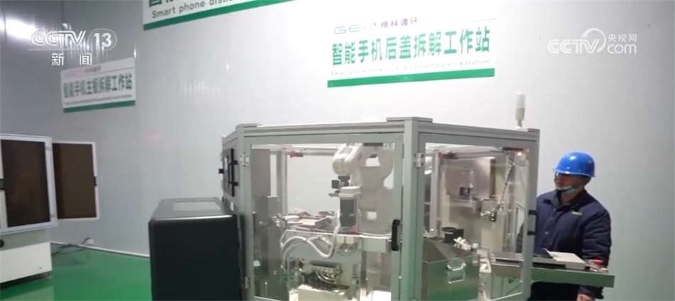 手機(jī)自動(dòng)化回收企業(yè)負(fù)責(zé)人 李燦康:在不拆機(jī)的情況下,檢測(cè)手機(jī)內(nèi)部是否有維修情況,檢測(cè)效率從進(jìn)到出只需要7—8秒。