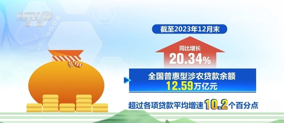 截至2023年12月末,全國普惠型涉農(nóng)貸款余額12.59萬億元,同比增長20.34%,超過各項貸款平均增速10.2個百分點。2023年,新發(fā)放普惠型涉農(nóng)貸款平均利率5.11%,同比下降0.87個百分點。