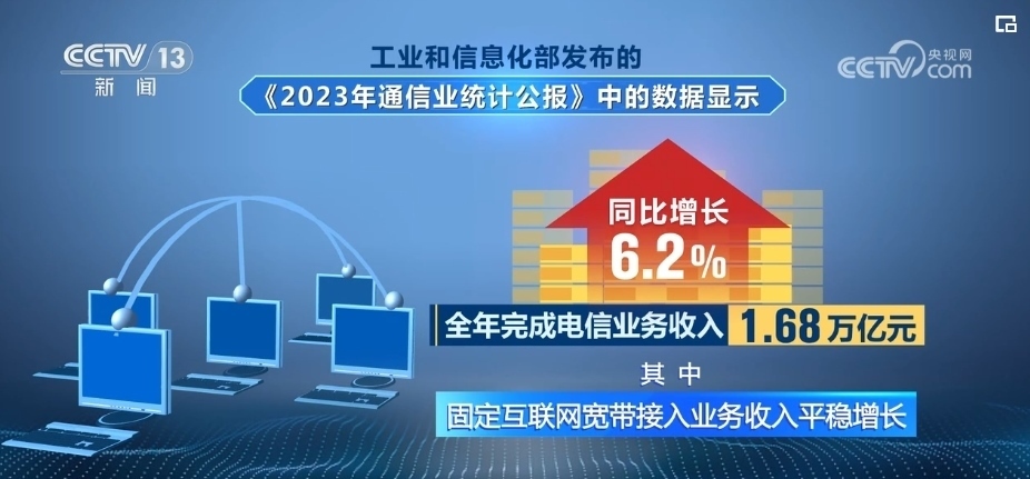 《統(tǒng)計公報》數(shù)據(jù)顯示,2023年,電信業(yè)務(wù)量收雙增,全年電信業(yè)務(wù)總量同比增長16.8%,比全國服務(wù)業(yè)生產(chǎn)指數(shù)增速快8.7個百分點,有力拉動服務(wù)業(yè)回升向好。