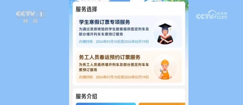 今年春運,鐵路部門推出預(yù)約購票和預(yù)填購票兩項購票新方式,預(yù)約購票功能專門針對學生和務(wù)工人員。符合條件的學生旅客(已通過學生優(yōu)惠資質(zhì)核驗且有剩余優(yōu)惠乘車次數(shù))可通過“學生寒假訂票專項服務(wù)”專區(qū)預(yù)約購買春運期間的火車票。已通過實名制核驗的務(wù)工人員可通過“務(wù)工人員春運預(yù)約訂票服務(wù)”專區(qū)預(yù)約購買春運期間火車票。
