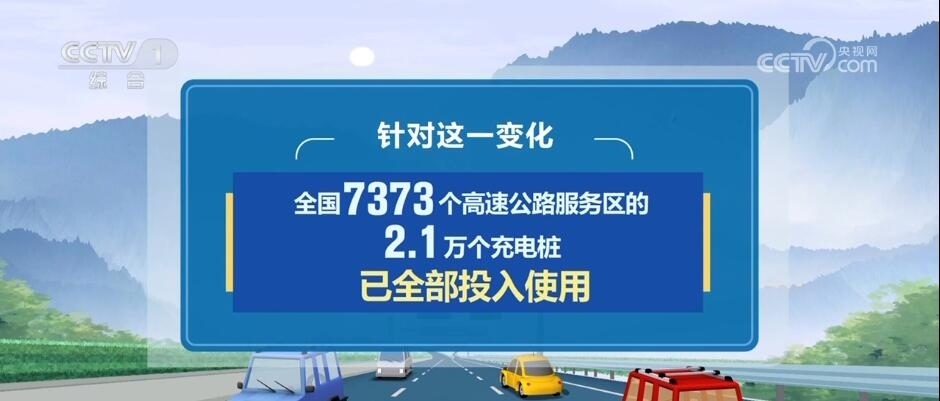 今年公路出行還有一個新變化,就是在小客車出行當中,新能源車輛占比增多。針對這一變化,目前,全國7373個高速公路服務(wù)區(qū)的2.1萬個充電樁已全部投入使用。