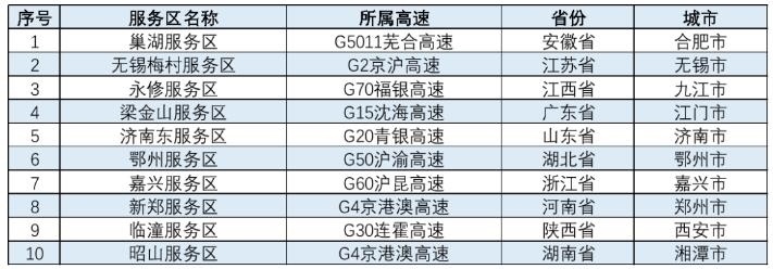 表 春節(jié)較繁忙服務區(qū) (全文圖表均來自交通運輸部路網(wǎng)監(jiān)測與應急處置中心官方微博)