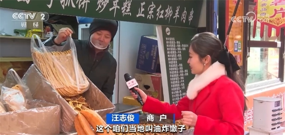 總臺記者 馬雅慧:今天一來到這里我就聞到了濃濃的香料味兒,大家看我身旁的這些都是青海特色的油炸年饃,當(dāng)?shù)厝艘步杏驼ü?。老板,我看這里款式各式各樣的都有,您能給我們介紹一下嗎?