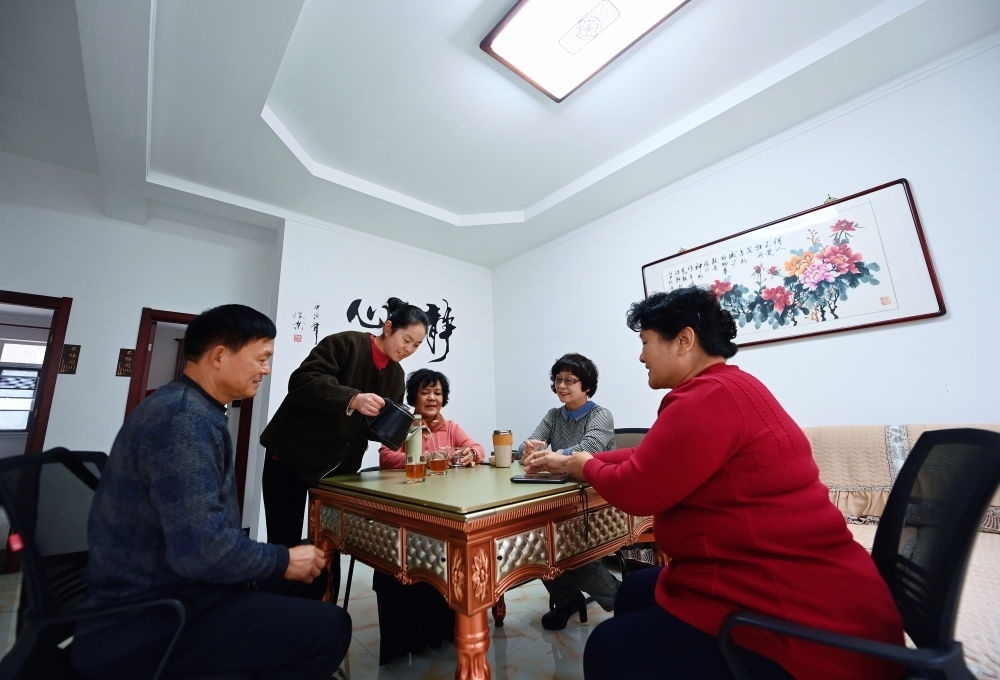 2024年1月30日,在天津市薊州區(qū)下營鎮(zhèn)前干澗村,民宿經營者盧桂鳳為游客上茶水。新華社記者 趙子碩 攝