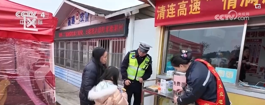 春運期間,廣東清遠市公安局在全市范圍內設置了34個春運暖心服務點?,F場工作人員除了提醒引導廣大司乘人員嚴格遵守交規(guī),共同打造安全、暢通的高速公路通行環(huán)境之外,還對在服務區(qū)內休整的司乘人員免費提供暖心服務,打造溫暖春運路。