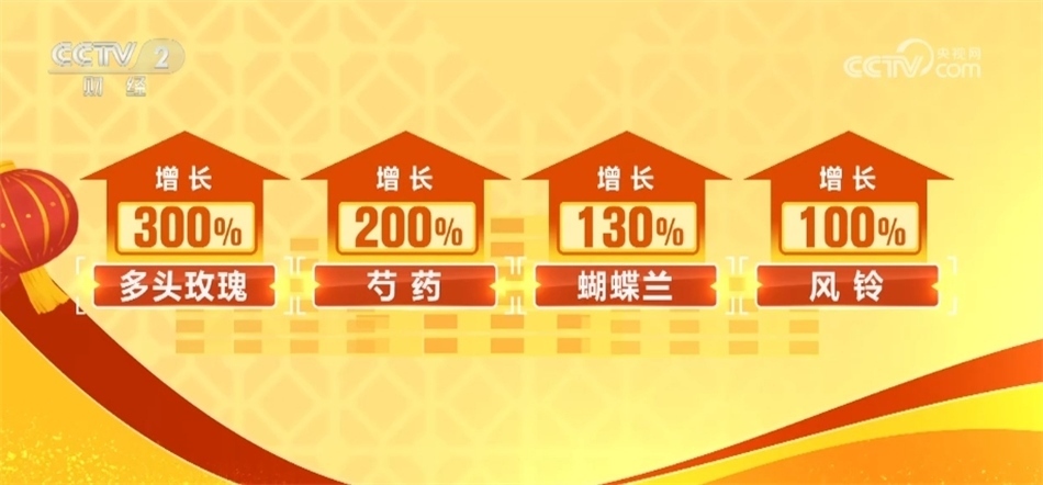 數(shù)據(jù)顯示,多頭玫瑰、芍藥、蝴蝶蘭、風(fēng)鈴等鮮花銷售同比增長均超100%,而一些較為小眾的品類也成為春節(jié)期間的熱銷品。