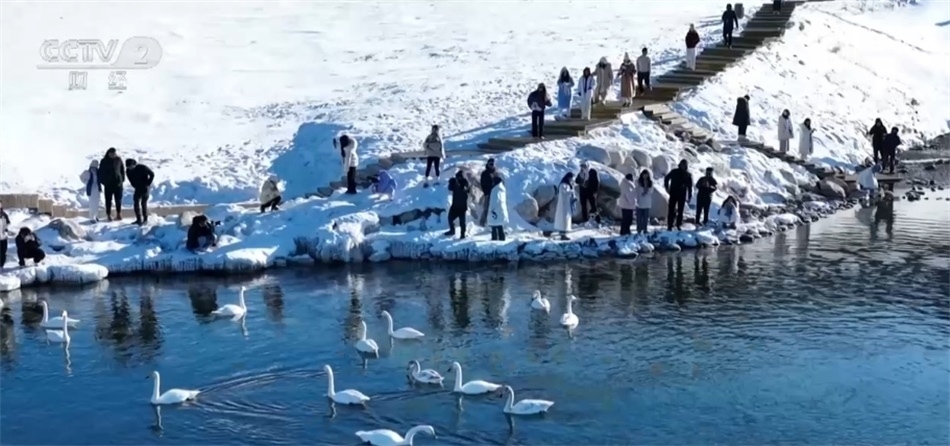 總臺記者 李楠:這里就是天山環(huán)抱中的新疆賽里木湖景區(qū),周圍的群山和湖面仍舊被冰雪覆蓋。在我身后正在舉辦冰雪“那達(dá)慕”迎春活動,當(dāng)?shù)氐霓r(nóng)牧民群眾和來自全國各地的游客正參與其中。