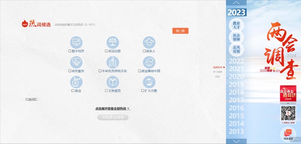 1、登錄人民網(wǎng)2024年全國兩會(huì)調(diào)查頁面。