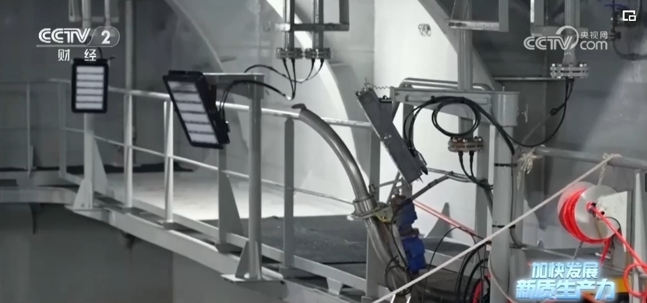 依靠首創(chuàng)的“船載艙養(yǎng)”模式,國信1號養(yǎng)殖工船,每年能實(shí)現(xiàn)3700噸高品質(zhì)魚類和650噸優(yōu)質(zhì)蛋白的供給。到了收獲的時(shí)候,艙內(nèi)的大黃魚將通過吸魚泵和傳送帶直接轉(zhuǎn)運(yùn)至休眠池,在那里進(jìn)行快速降溫休眠鎖鮮。