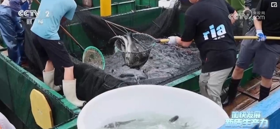入苗、投喂、換水、起捕、加工、運(yùn)輸……全流程的智慧化讓這座龐大的海洋牧場同時(shí)成為一座巨型的海上漁業(yè)工廠。