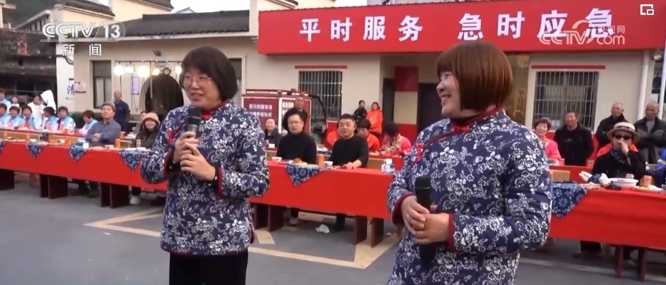 為了參加這次“村晚”,村里喜歡樂器的7個(gè)村民臨時(shí)組建了鑼鼓隊(duì),每天積極練習(xí)。鼓聲一響,瞬間點(diǎn)燃了現(xiàn)場氣氛,上百人圍桌就餐看演出,年的味道就這樣來了。