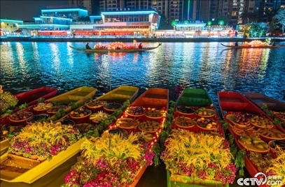 2月5日,廣東佛山,春節(jié)臨近,佛山最大的水上花市在里水鎮(zhèn)開幕。其中水上渡船、水上燈會等項(xiàng)目融入了非遺元素,展示嶺南水鄉(xiāng)風(fēng)情,營造濃濃的年味。