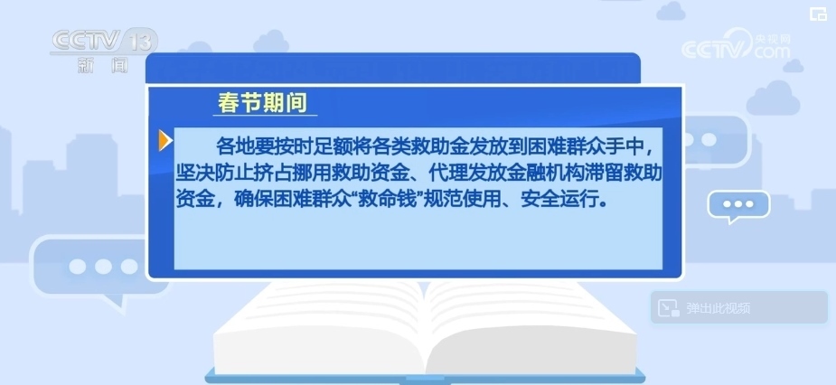 各地要按時足額將各類救助金發(fā)放到困難群眾手中,堅決防止擠占挪用救助資金、代理發(fā)放金融機(jī)構(gòu)滯留救助資金,確保困難群眾“救命錢”規(guī)范使用、安全運(yùn)行。