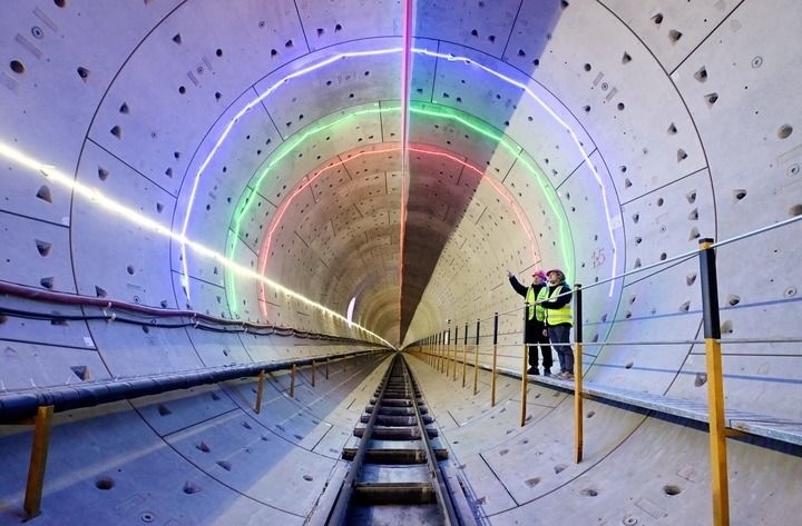 2024年2月3日,工作人員在北京軌道交通22號(hào)線(xiàn)河北段盾構(gòu)隧道內(nèi)進(jìn)行巡查。新華社記者 王曉 攝
