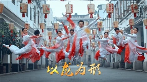 “有一條龍,藏在心里”,一招一式,以龍為形,以舞蹈之美勾畫武術之韻。武舞同源,形意相融,通過精巧的舞蹈造型設計,將龍形拳與現代舞相結合。龍形拳的剛勁有力與現代舞的優(yōu)雅美感同步上演。以意為神、以氣催勁、內外合一,完美演繹出龍的身姿。
