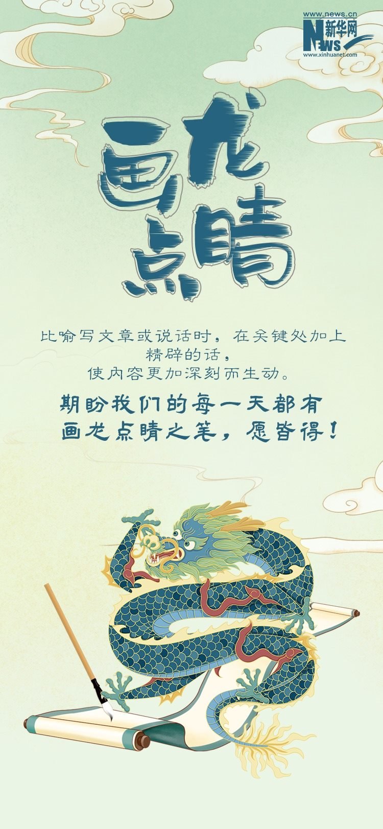 2024年是農(nóng)歷甲辰龍年?!褒垺痹谥腥A民族心目中有著重要地位,被視為吉祥、權(quán)威和神圣的象征。在歷史發(fā)展長河中,“龍”逐步匯聚起豐富的文化內(nèi)涵與美好寓意,成為人們精神信仰和文化生活的重要組成部分。春節(jié)期間,《尋“龍”記》帶您領(lǐng)略博大精深的中華“龍”文化,本期推出一組寓意深遠(yuǎn)、意蘊(yùn)豐富的含有“龍”字的成語,為新的一年注入更多的美好祝愿。