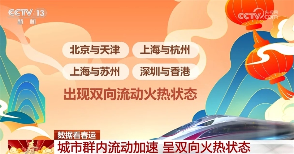 數(shù)據(jù)顯示,城市群內(nèi)的流動也在明顯加速,尤其是北京到天津、上海到杭州、上海到蘇州、深圳到香港這些熱門路線,出現(xiàn)了雙向流動火熱的狀態(tài)。