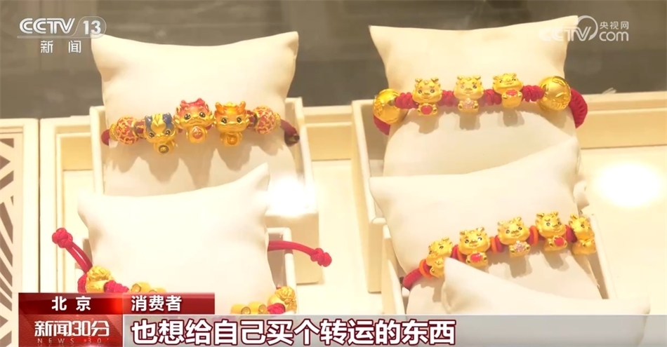 消費(fèi)者:我今天陪父母看看黃金,今年龍年,也想給自己買個(gè)(黃金)轉(zhuǎn)運(yùn)的東西,能夠在新的一年開(kāi)開(kāi)心心、健健康康的。(黃金飾品)樣式非常多,工藝越來(lái)越精湛了。