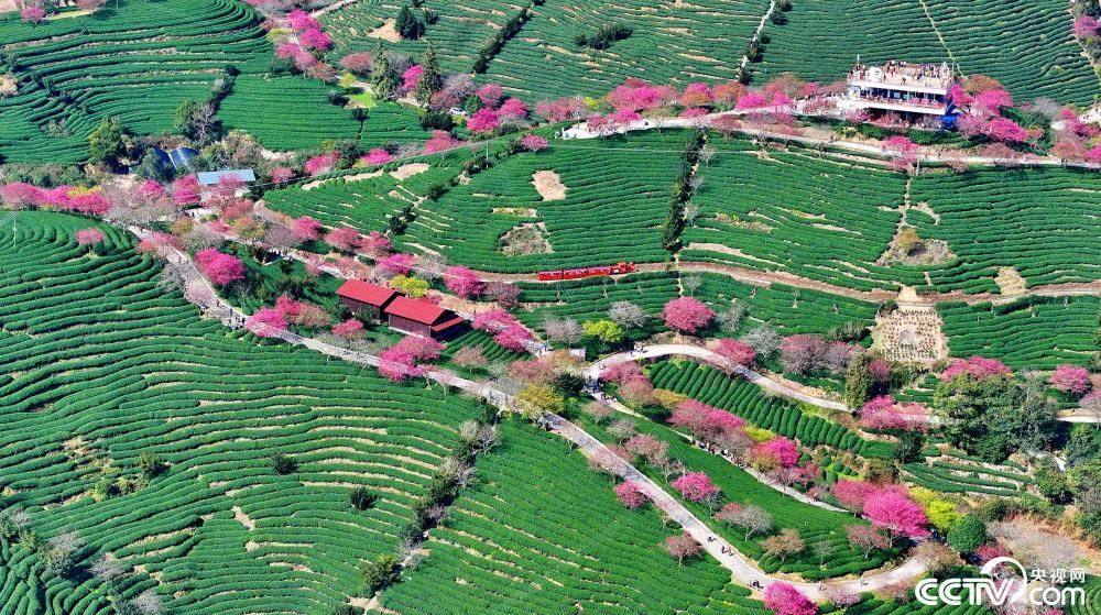 ??2024年2月13日,福建省龍巖市漳平市永福鎮(zhèn)后孟村,茶園櫻花綻放,構(gòu)成一幅春意盎然的多彩畫卷。?