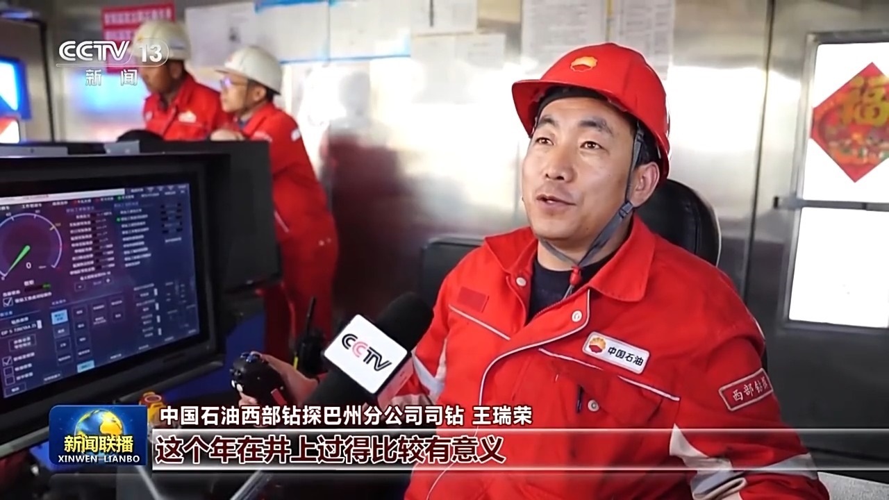 中國石油西部鉆探巴州分公司司鉆 王瑞榮:這個(gè)年在井上過得比較有意義,因?yàn)槊看蛞幻走M(jìn)尺就是一個(gè)新的亞洲紀(jì)錄在誕生。自己參與到其中,感覺挺自豪的。