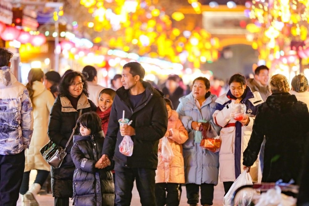 2024年2月4日,游客在新疆喀什古城景區(qū)汗巴扎夜市游覽。新華社發(fā)(蔡增樂攝)