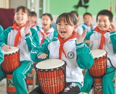 江西省樟樹市義成鎮(zhèn)中心小學(xué)學(xué)生在練習(xí)樂器演奏。目前,我國基礎(chǔ)教育普及水平總體達(dá)到世界中上行列。周 亮攝(影像中國)
