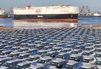 中國首艘由國內(nèi)船企建造、專門用于國產(chǎn)新能源汽車出口的汽車運(yùn)輸船“比亞迪開拓者1號”搭載新能源汽車從山東煙臺港啟航。2023年,中國新能源汽車產(chǎn)銷量均突破900萬輛,其中出口120.3萬輛,同比增長77.6%,成為經(jīng)濟(jì)高質(zhì)量發(fā)展中的一抹亮色。唐 克攝(影像中國)