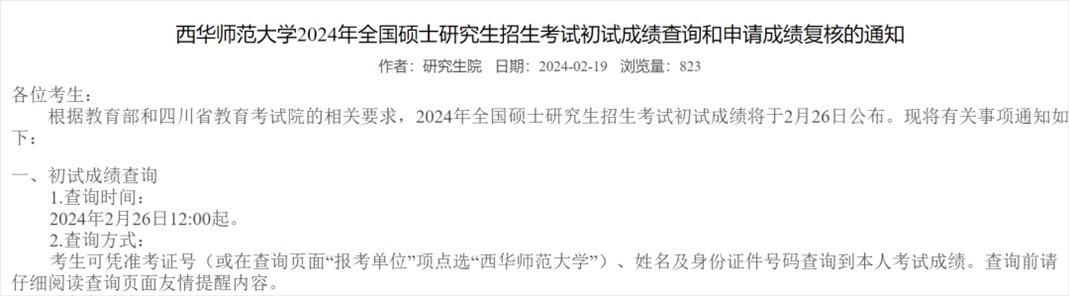 西華師范大學(xué)考研初試成績