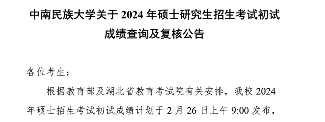 中南民族大學(xué)考研初試成績