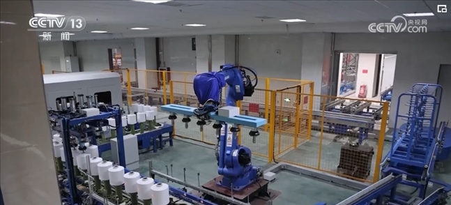 研發(fā)快速、制造智能,在浙江的一個(gè)錦綸生產(chǎn)車間,從原料配送、落筒、絲餅傳輸檢測、包裝和倉儲都已實(shí)現(xiàn)全流程智能制造,24小時(shí)開工。