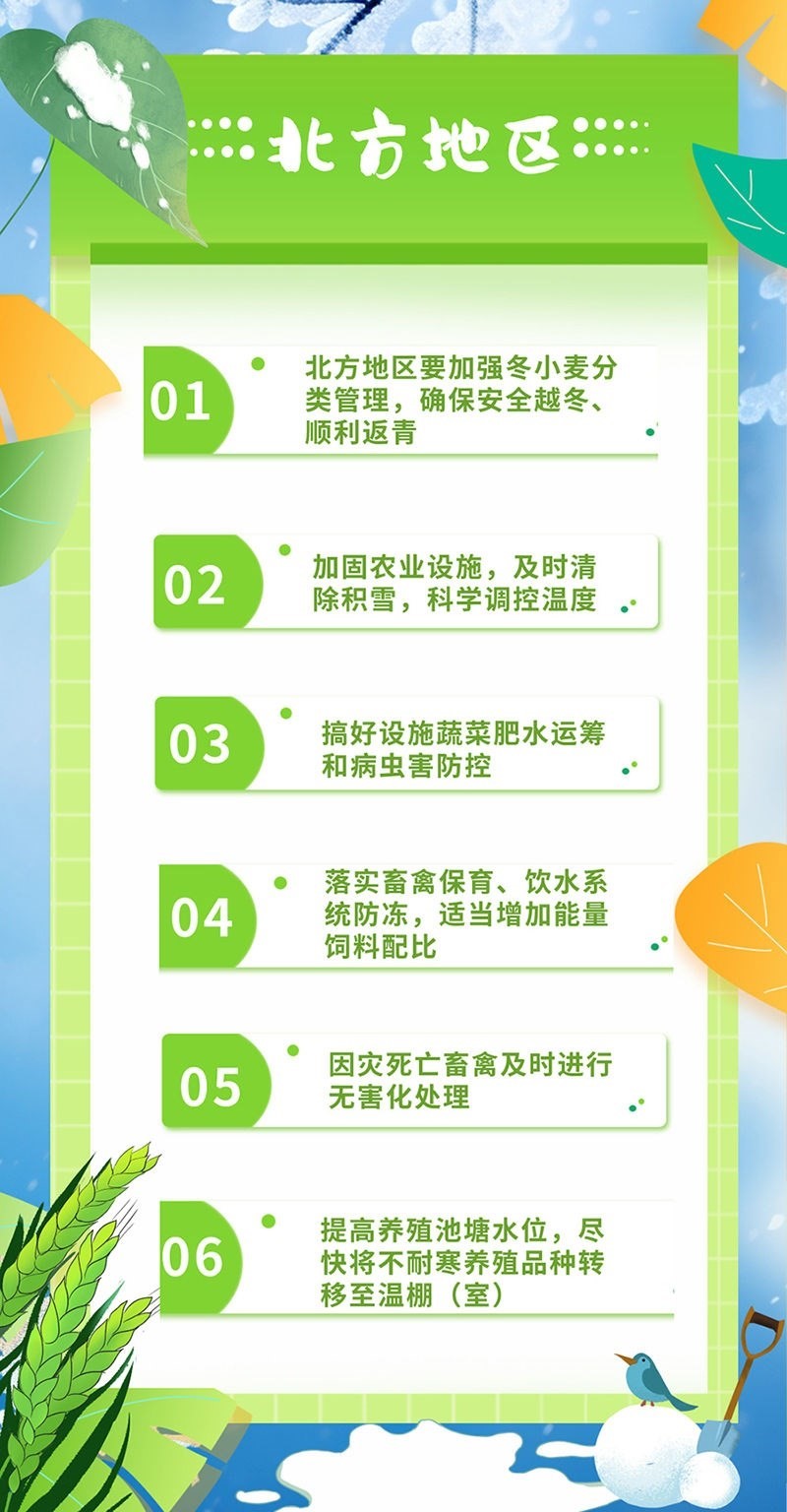 這里還有一份涉及蔬菜、果樹、畜禽、水產(chǎn)、綠肥的詳細(xì)防寒防凍指南,希望對你有幫助