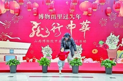 小朋友和家長在山西博物院游玩。新華社發(fā)