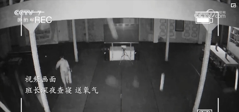 放置在哨樓的攝像機(jī),在凌晨?jī)牲c(diǎn)多的時(shí)候記錄了新兵們第一次執(zhí)勤時(shí)的狀態(tài)。