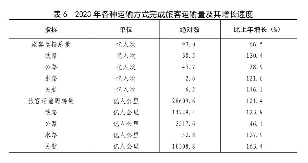 全年旅客運輸總量93億人次,比上年增長66.5%。旅客運輸周轉(zhuǎn)量28610億人公里,增長121.4%。