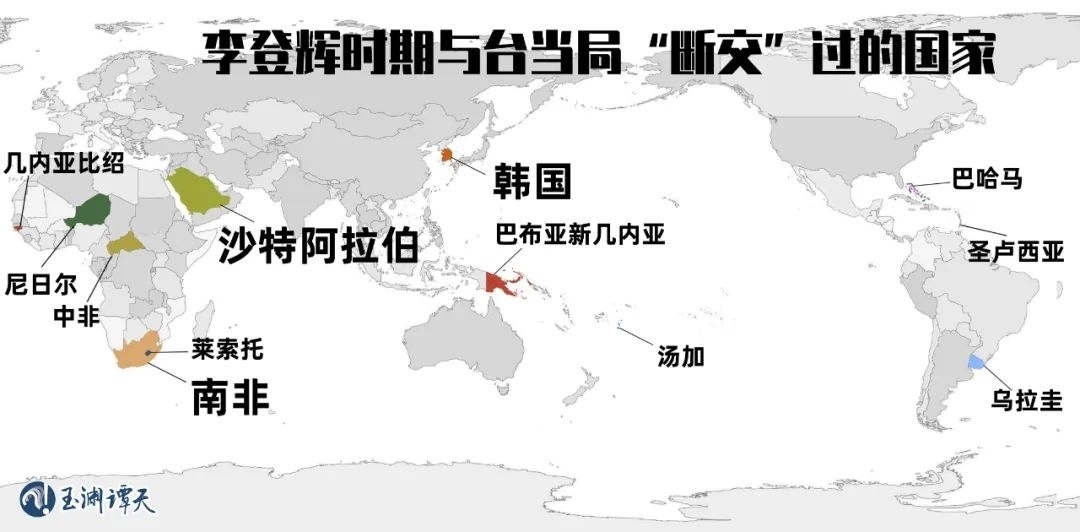 1988年,李登輝上臺,擔(dān)任臺灣地區(qū)領(lǐng)導(dǎo)人。此時,臺灣當(dāng)局的“邦交國”僅剩下了22個。