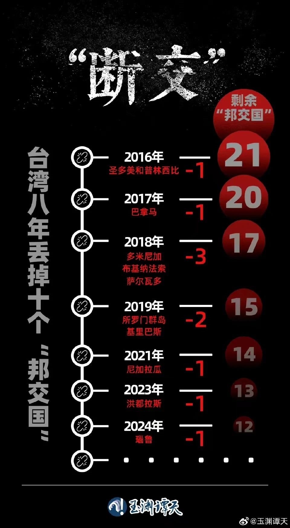 這一輪“斷交”,有一個突出特點(diǎn),臺灣當(dāng)局所謂重要的“邦交國”全部與其斷交。