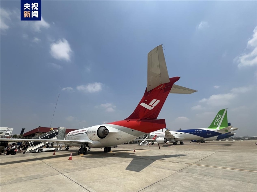 ·國產商用飛機C919及ARJ21首次飛抵柬埔寨。