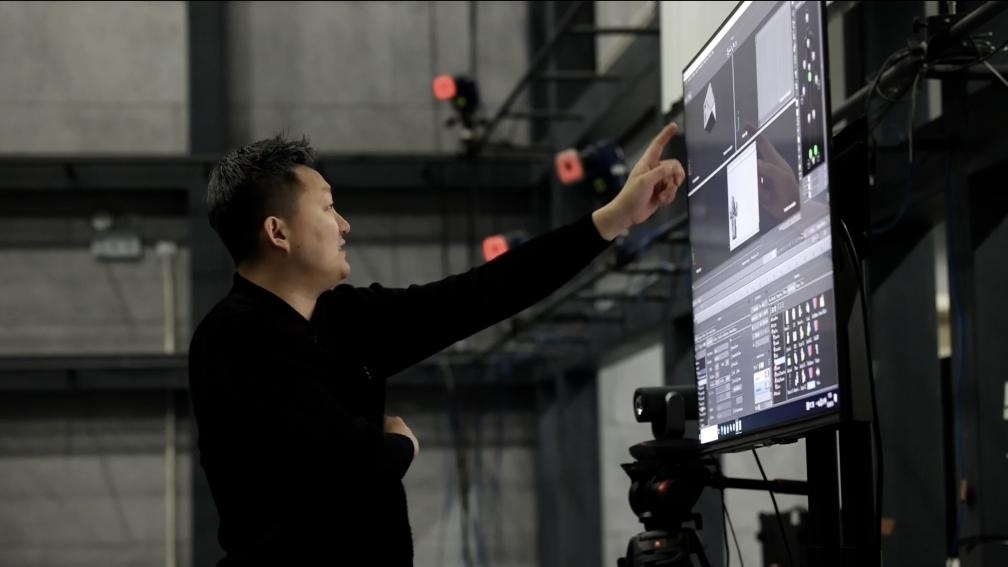 “這是動(dòng)作數(shù)字孿生,利用光學(xué)動(dòng)捕技術(shù),棚內(nèi)多個(gè)專業(yè)攝像頭捕捉演員身上的特定標(biāo)記,以毫秒級(jí)的速率計(jì)算出角色的運(yùn)動(dòng)軌跡,然后將數(shù)據(jù)傳送到電腦上,實(shí)現(xiàn)虛擬人物的動(dòng)作。”國家動(dòng)漫園公共技術(shù)服務(wù)平臺(tái)動(dòng)捕棚的技術(shù)顧問崔盛輯向記者介紹道。