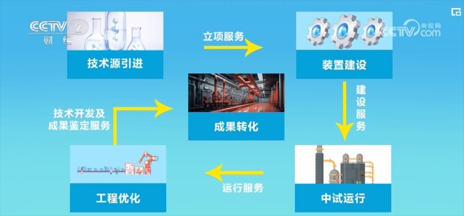 從技術(shù)源引進(jìn)、裝置建設(shè)、中試運行、工程優(yōu)化到成果轉(zhuǎn)化等5個關(guān)鍵節(jié)點,為中試項目提供包含立項、建設(shè)、運行以及技術(shù)開發(fā)、成果鑒定等24項專業(yè)服務(wù)。