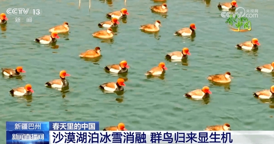 伴隨著陣陣鳥鳴,我們來到新疆巴州尉犁縣羅布淖爾國家濕地公園,碧綠的水面上,成群結(jié)隊(duì)的赤嘴潛鴨、赤麻鴨等鳥類時(shí)而用翅膀拍打水面展翅飛翔,時(shí)而三五成群在水中嬉戲、覓食,群鳥與黃沙、碧水、葦叢、胡楊交相輝映,形成一幅生機(jī)勃勃的春日畫卷。