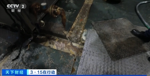 總臺央視記者 李雪峰:在企業(yè)的生產(chǎn)車間里,可以看到環(huán)境是十分惡劣。地面上污水橫流,夾雜著油污的水順著水渠一直涌向了地溝,生產(chǎn)車間里設(shè)備已是銹跡斑斑。