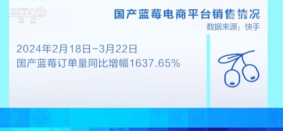 隨著短視頻打卡、直播帶貨、線上拼團(tuán)等模式的興起,通過(guò)電商平臺(tái)購(gòu)買藍(lán)莓的消費(fèi)者也出現(xiàn)爆發(fā)式增長(zhǎng)。某電商平臺(tái)數(shù)據(jù)顯示,今年春節(jié)以來(lái)(2月18—3月22日),國(guó)產(chǎn)藍(lán)莓的訂單量同比增幅1637.65%。