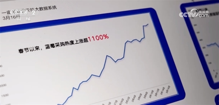 一個(gè)農(nóng)產(chǎn)品交易平臺(tái)的數(shù)據(jù)顯示,春節(jié)以來(lái),他們平臺(tái)的藍(lán)莓品類采購(gòu)熱度上漲超過(guò)11倍。