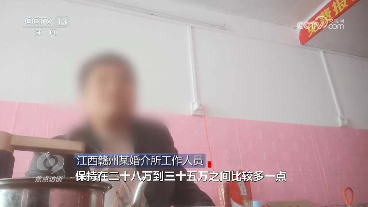 江西贛州某婚介所工作人員:“我們這邊彩禮有點(diǎn)偏貴,保持在二十八萬到三十五萬之間,最多的彩禮三十八萬?!?/p>