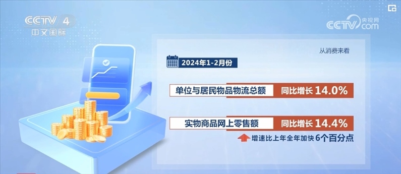 從消費(fèi)來看,1—2月份,單位與居民物品物流總額同比增長14.0%,實(shí)物商品網(wǎng)上零售額同比增長14.4%,增速比上年全年加快6個百分點(diǎn);快遞業(yè)務(wù)量超過230億件,同比增長28.5%,比上年全年加快9.1個百分點(diǎn)。