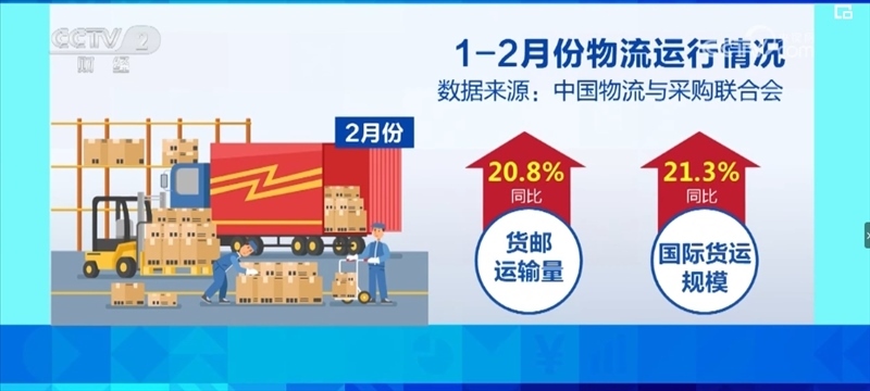 航空物流淡季不淡,2月份,貨郵運(yùn)輸量同比增長20.8%,國際貨運(yùn)規(guī)模同比增長21.3%。電商物流運(yùn)行穩(wěn)中向好,1—2月份,中國電商物流指數(shù)平均值升至近年來的最高水平。
