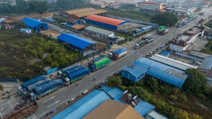 ?云南省德宏州隴川縣章鳳口岸等待通關的貨車(2023年12月3日攝)。新華社發(fā) 桂金再攝