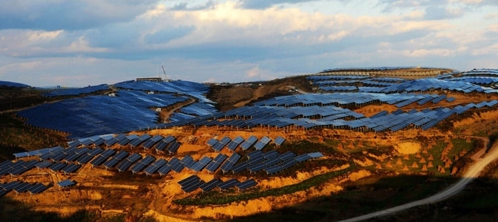 在昆明市石林縣北大村,由23萬塊光伏板組成的56個光伏發(fā)電方陣形成一道獨特景觀。由國家電投云南國際電力投資有限公司建設的這個光伏電站,年發(fā)綠色電能達7800萬度。