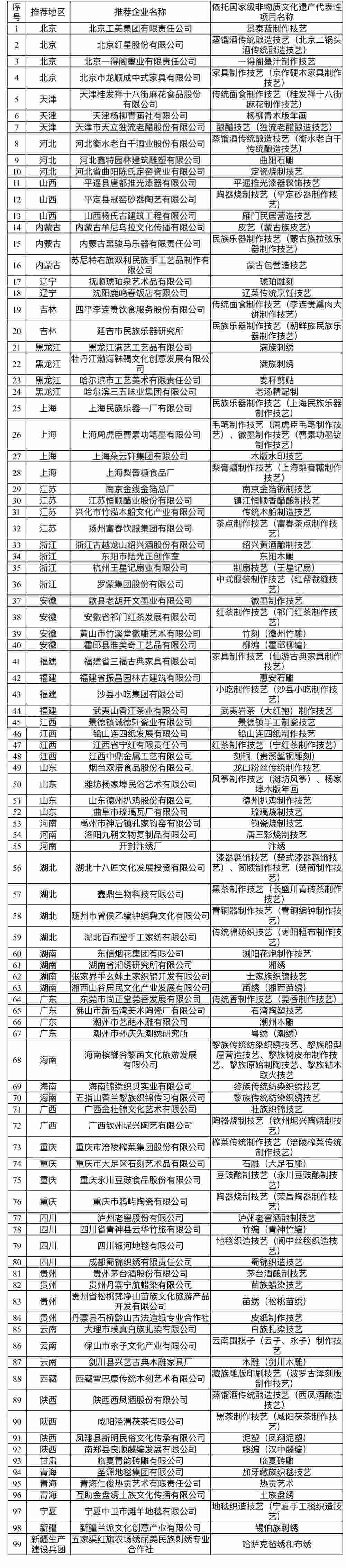 央視網(wǎng)消息:據(jù)“文旅之聲”公眾號(hào)消息,根據(jù)《“十四五”非物質(zhì)文化遺產(chǎn)保護(hù)規(guī)劃》和文化和旅游部等十部門《關(guān)于推動(dòng)傳統(tǒng)工藝高質(zhì)量傳承發(fā)展的通知》的工作要求,在各地推薦的基礎(chǔ)上,經(jīng)過專家評(píng)審、實(shí)地考察和社會(huì)公示等程序,文化和旅游部認(rèn)定99家企業(yè)和單位為“2023—2025年國家級(jí)非物質(zhì)文化遺產(chǎn)生產(chǎn)性保護(hù)示范基地”,現(xiàn)予公布。