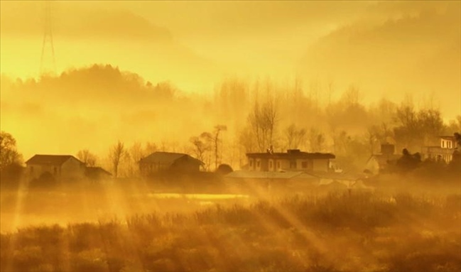 3月29日,安徽省池州市梅村鎮(zhèn)晨霧彌漫,靜謐的村莊、油菜花田在朝霞中若隱若現(xiàn),宛如一幅夢(mèng)幻的江南詩意畫卷。